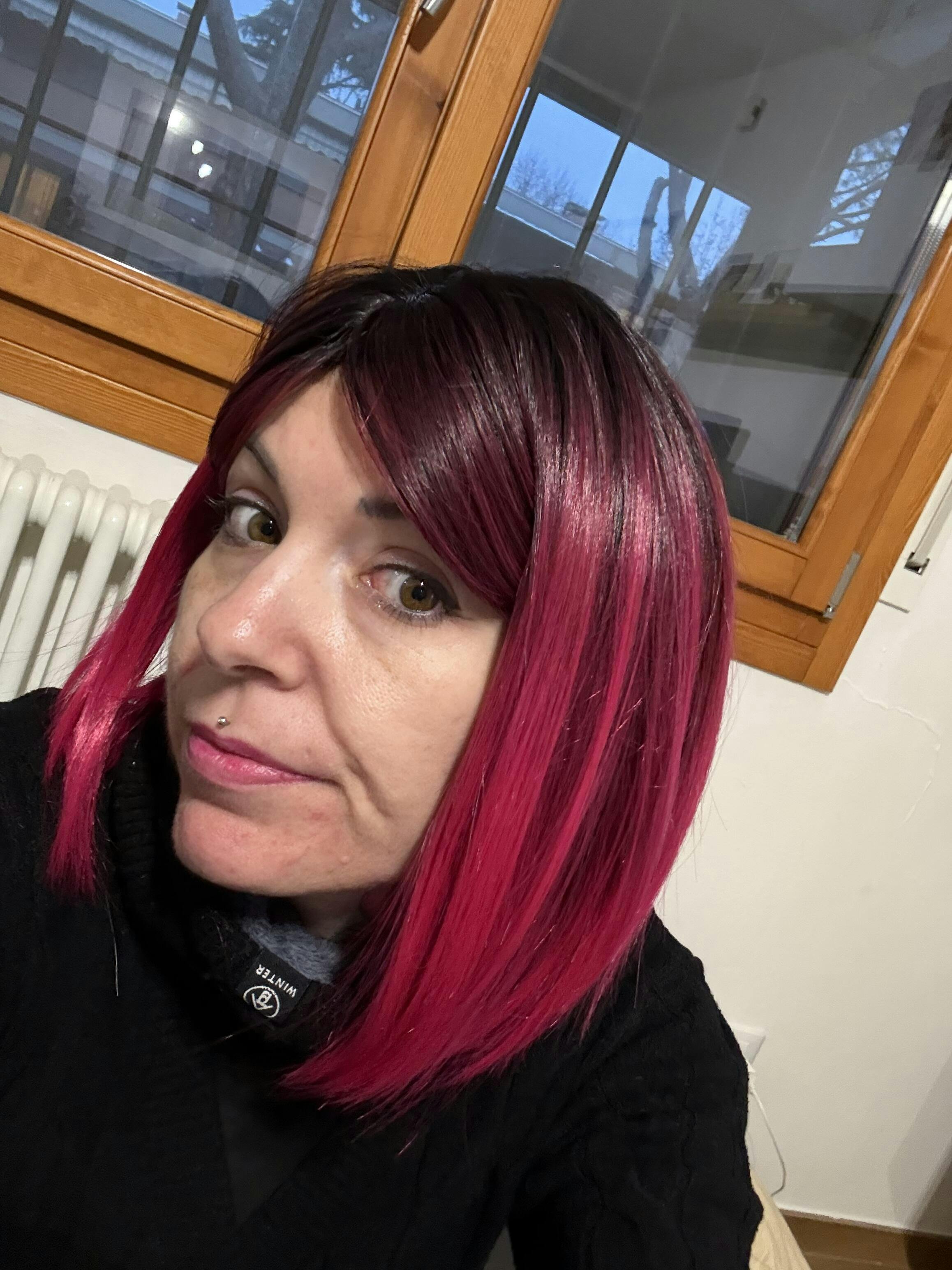 La Parrucca Eva è perfetta per cambiare look in modo rapido e facile. Lunghezza a caschetto ideale per un taglio moderno, con sfumature Fucsia per un tocco di colore e originalità. Realizzata con materiali di alta qualità per un risultato naturale e duraturo.